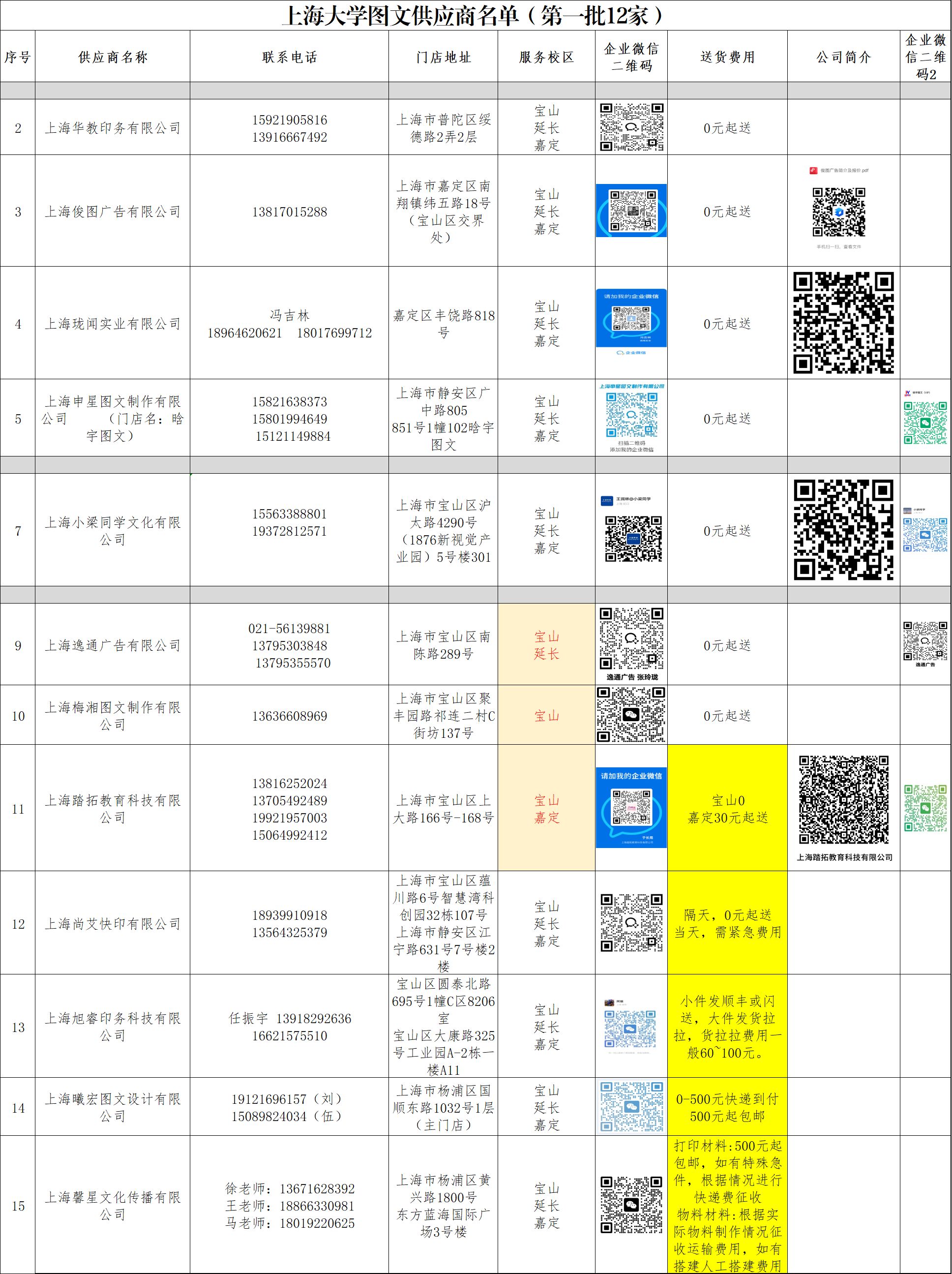 第一批图文设计印刷制作供应商:上海韦瓦第文化发展有限公司、上海源叮文化创意有限公司在学校采购项目过程中存在违规行为,自2025年6月10日起取消我校供应商资质,期限3年。(2025年6月11日)
